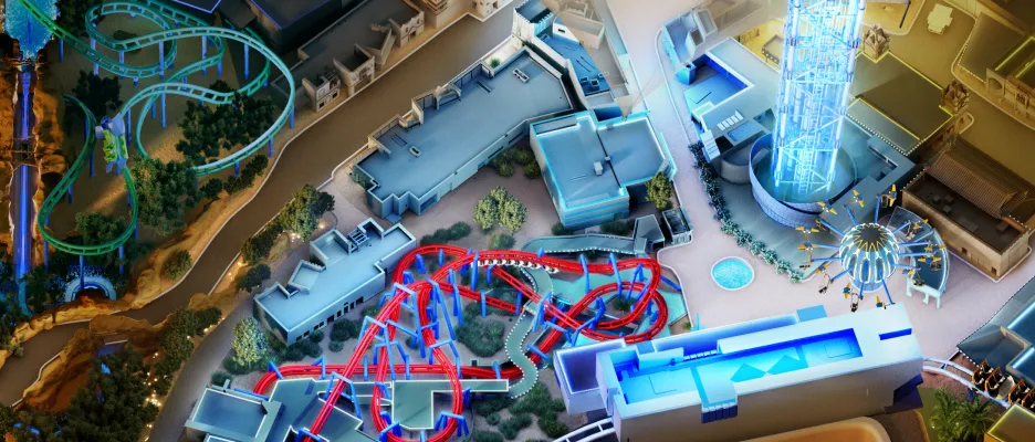 Enjoy an exhilarating, futuristic adventure over the City of Thrills on the high-speed, suspended coaster, Adrena-Line, presented by Jahez. Glide effortlessly through the air with nothing but endless space around you.