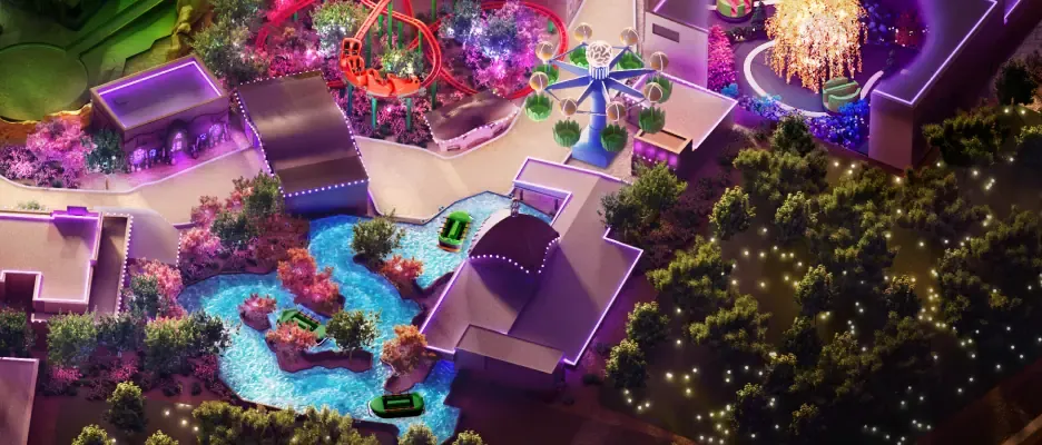 Cool off after a long day spent in the theme park at Amirat Al Buhayra, an interactive water-play ride. Charts in a course across the pond on board a giant leaf, while squirting water streams at interactive frogs and avoiding the sprays from whimsical squirting flowers and playful critters.