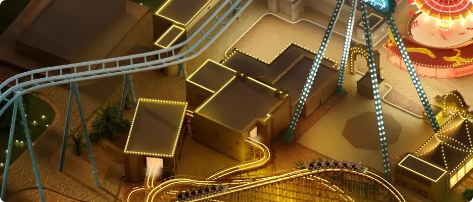 A hybrid wooden coaster that defies gravity! Marvel at the incredible engineering of Colossus, a wooden wonder designed to bring smiles and thrills to the young and the young-at-heart. This cleverly crafted anti-gravity ride is renowned for its impressive airtime and exhilarating experience.