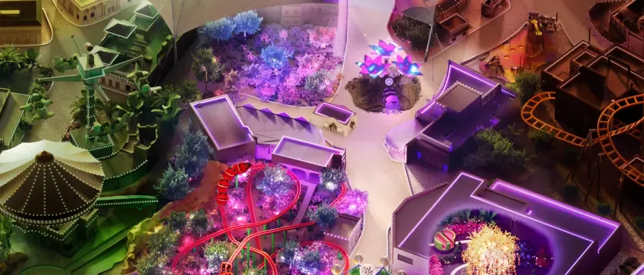 A fun-filled roller coaster adventure, that starts as the ladybug takes her first flight to search for her favorite food! She reaches a cluster of field flowers where she meets a butterfly sitting on a brightly colored flower. At night the butterfly and flowers are illuminated, giving the area a magical and warm glow.